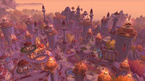 Once finished with the intro area, you’re sent to what I’m guessing will be the star of the expansion: the revamped Silvermoon City. It’s GORGEOUS. It can be a little disorienting at first with what initially feels like a new city, but then realizing many landmarks are still in roughly the same place (the bank, the AH, etc). One weird quirk is that Alliance and Horde are now both allowed into Silvermoon City, although there’s a Horde-only area that’s pretty easy to slip into. but I imagine that won’t be as much of an issue as we get used to the new city over time.